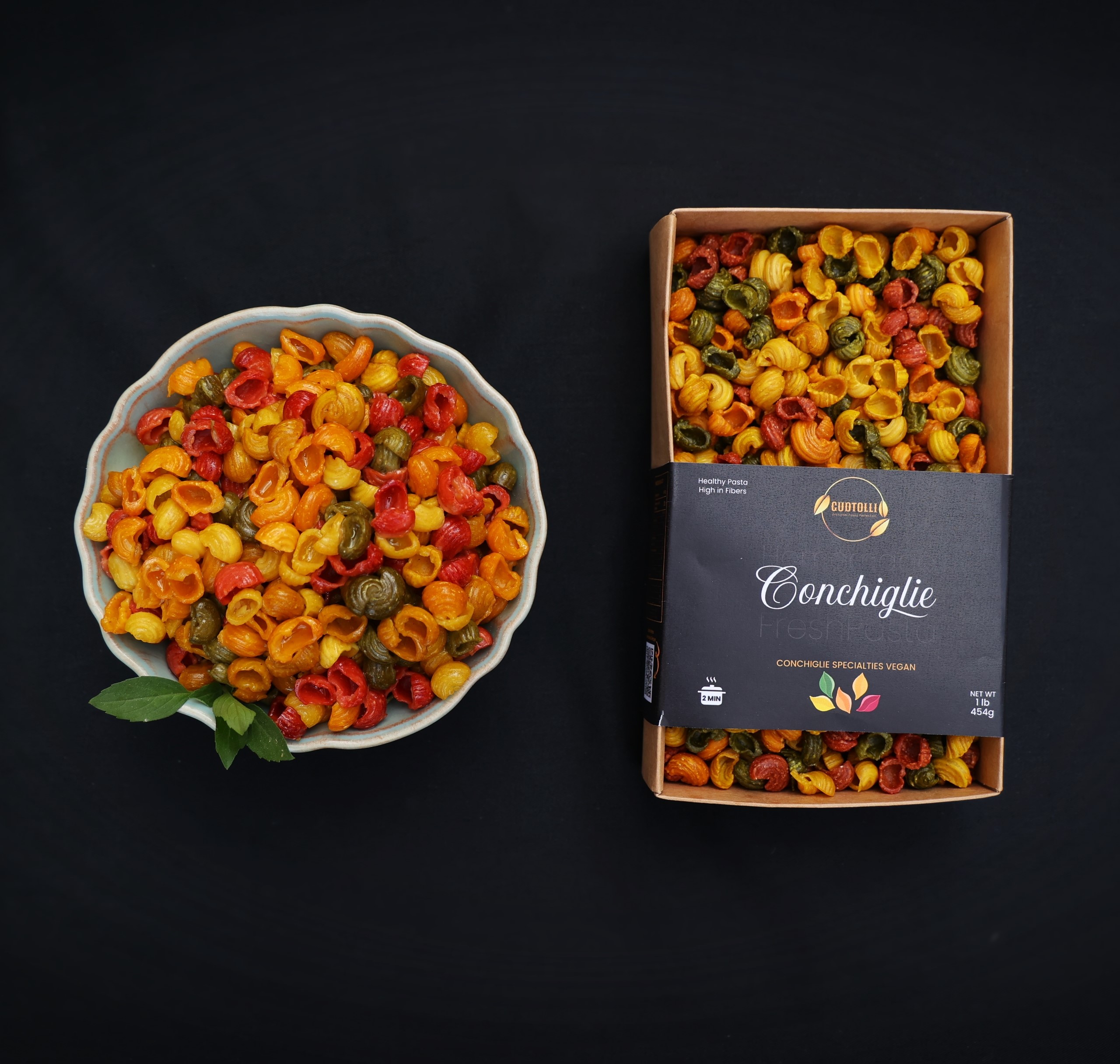 Gudtollis Conchiglie Specialties, is crafted with utmost care using a blend of premium ingredients. These delectable pasta creations are made from a combination of highly refined flour, and olive oil, enhanced with the vibrant flavors of spinach, carrots, pumpkin, basil, turmeric, saffron, and curry.