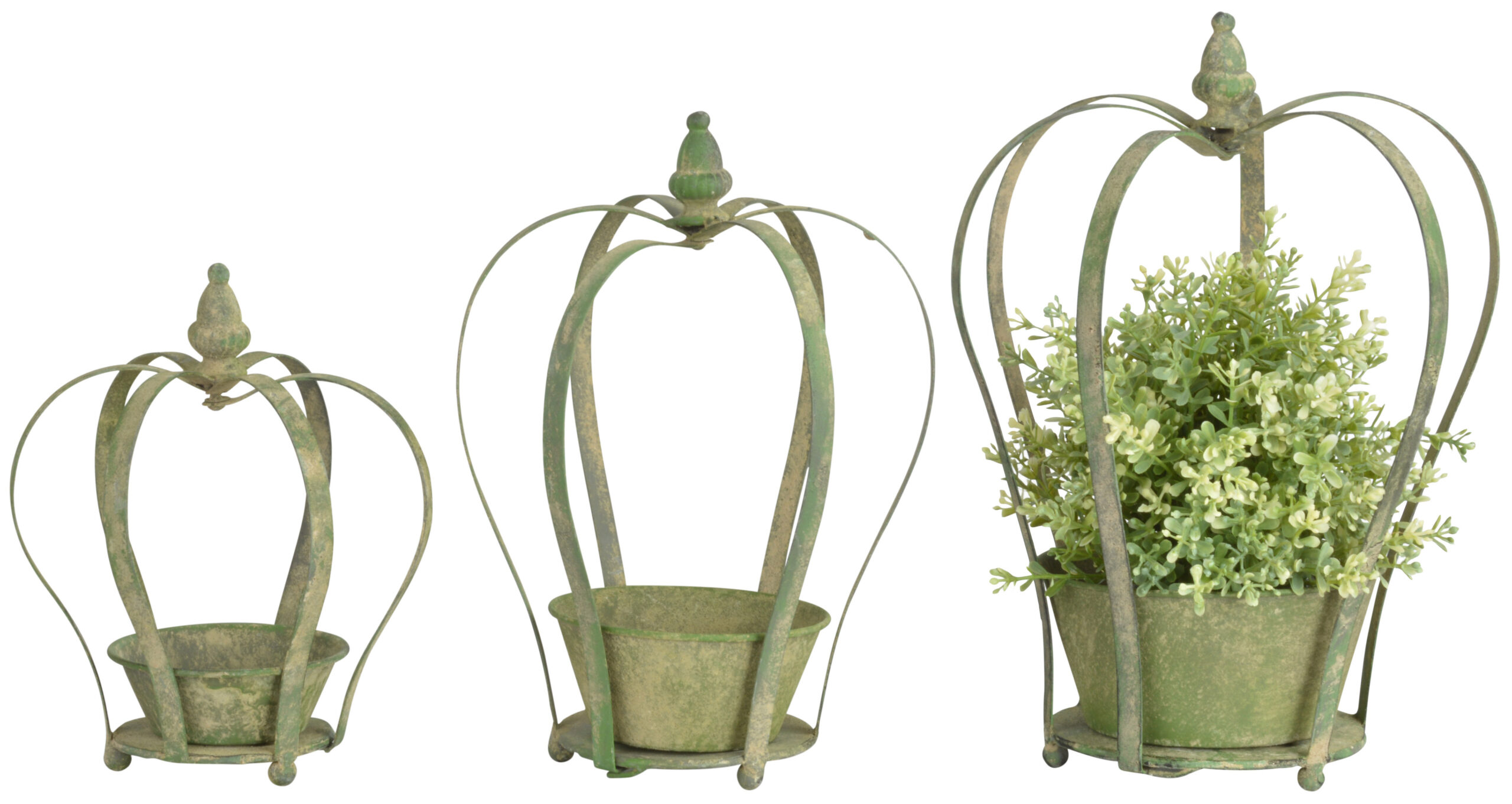 Planter Aged Metal Green Crown (Piece) – Furn Art